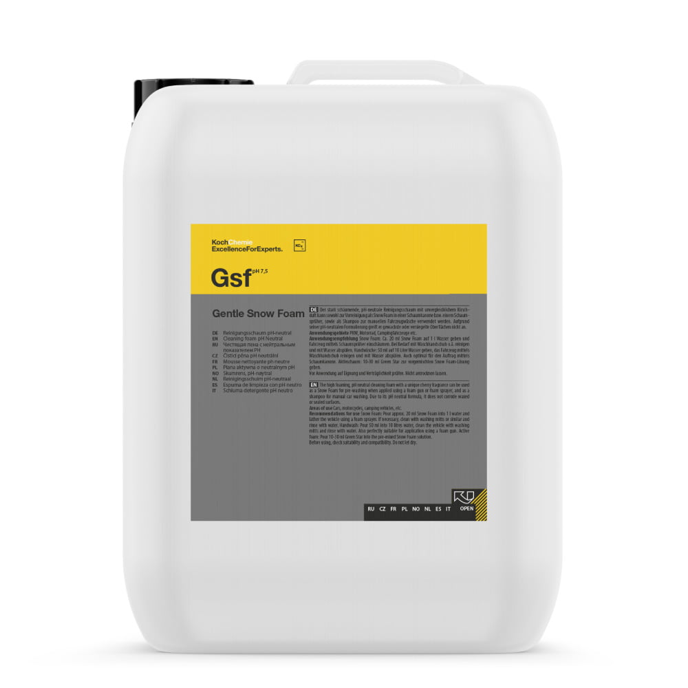 Snow Foam: Pour approx. 20 ml Snow Foam into 1 l water and lather the vehicle using a foam sprayer. If necessary, clean with washing mitts or similar and rinse with water.